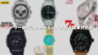 ソーラー腕時計が動かない!原因と簡単対処法 ソーラー腕時計は電池交換が不要で便利な時計ですが、「久しぶりに使おうと思ったら動かなくなっていた」というトラブルは珍しくありません。本記事では、ソーラー腕時計が動かなくなる主な原因と、それぞれの対処法について詳しく解説します。ソーラー腕時計... 2026.02.01