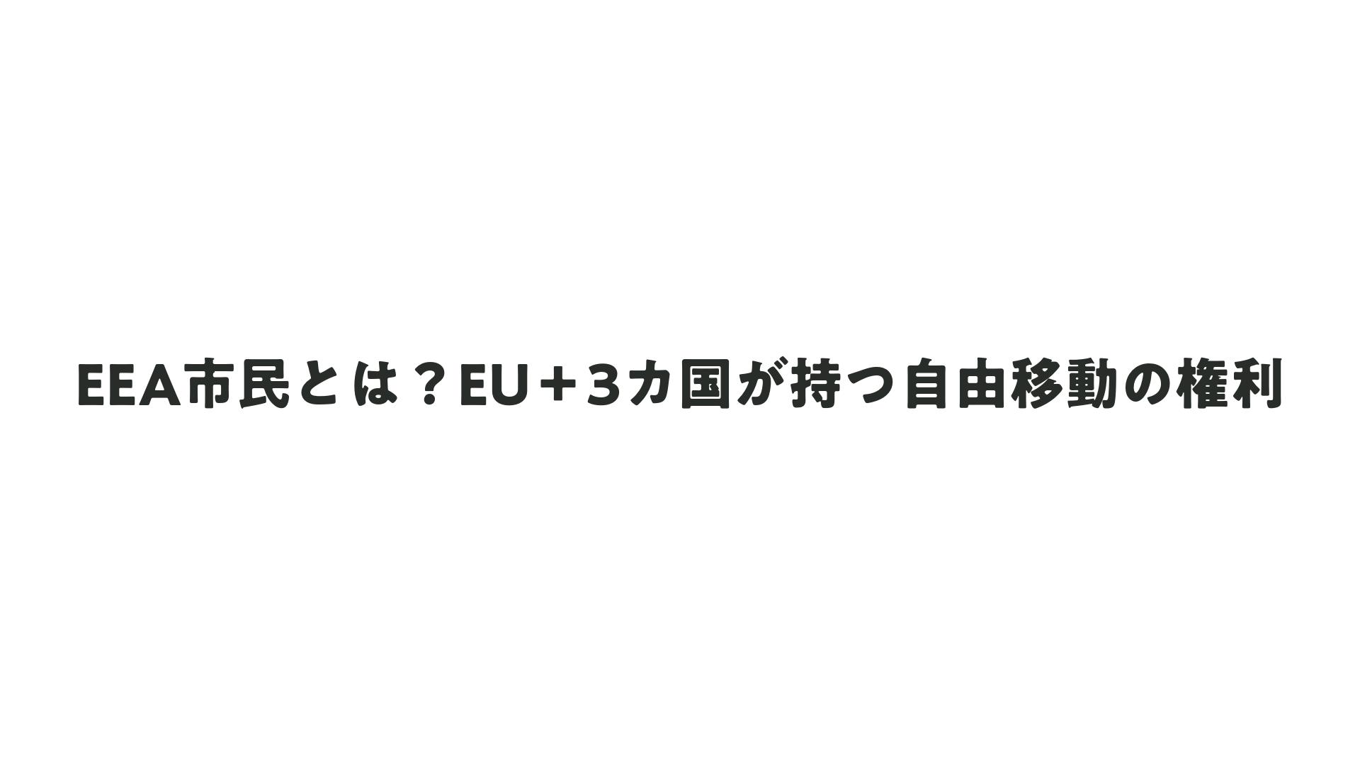 EEA citizenは、EUの27加盟国(オーストリア、ベルギー、ブルガリア、クロアチア、キプロス、チェコ、デンマーク、エストニア、フィンランド、フランス、ドイツ、ギリシャ、ハンガリー、アイルランド、イタリア、ラトビア、リトアニア、ルクセンブルク、マルタ、オランダ、ポーランド、ポルトガル、ルーマニア、スロバキア、スロベニア、スペイン、スウェーデン)およびEEA特有の3カ国(アイスランド、リヒテンシュタイン、ノルウェー)の国民です。これらの国々のパスポートを持つ人々がEEA citizenとして認められます。スイスはEEA加盟国ではありませんが、類似の権利を有する場合があります。