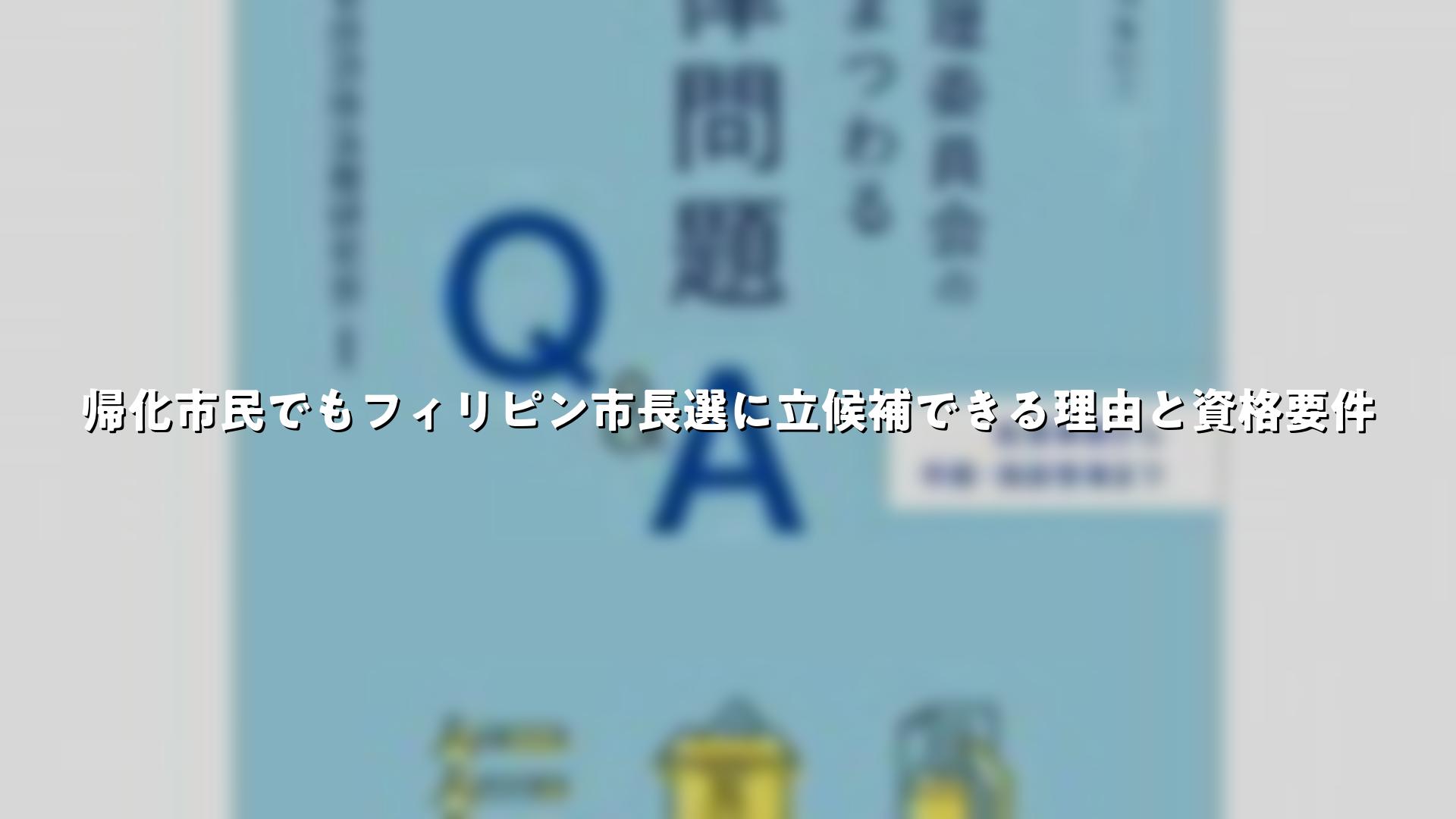 帰化市民でもフィリピン市長選に立候補できる理由と資格要件をまとめました