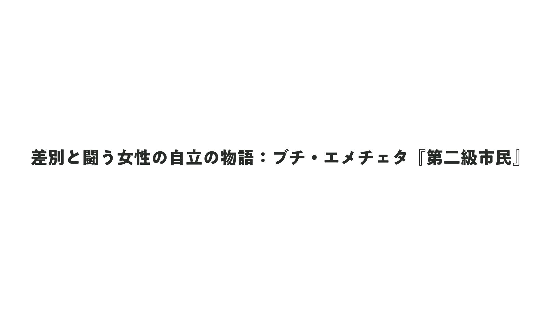 差別と闘う女性の自立の物語:ブチ・エメチェタ『第二級市民』をまとめました